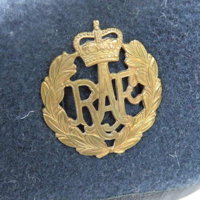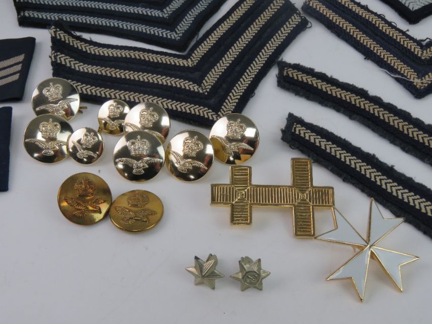 An RAF beret by Kangol, size 6 7/8 with badge upon, together with RAF buttons, cloth badges etc.