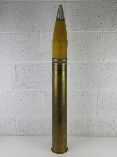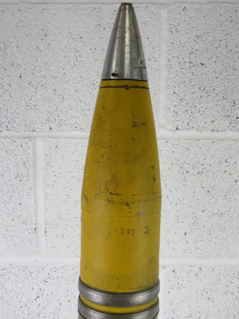 An inert WWII German 10.5cm Naval shell, 1940 marked with German military marks and some original stencilling, the C/28 fuse is dated 1943.