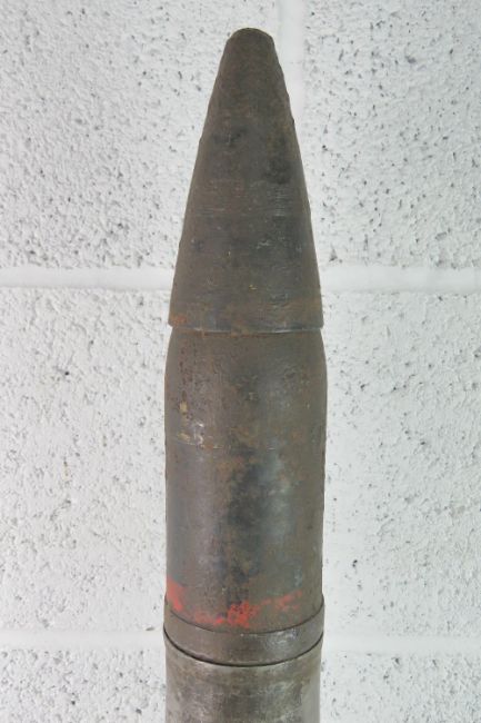 An inert WWII German 7.5cm Pak40 shell, dated 1944 with German markes and bzs makers mark.