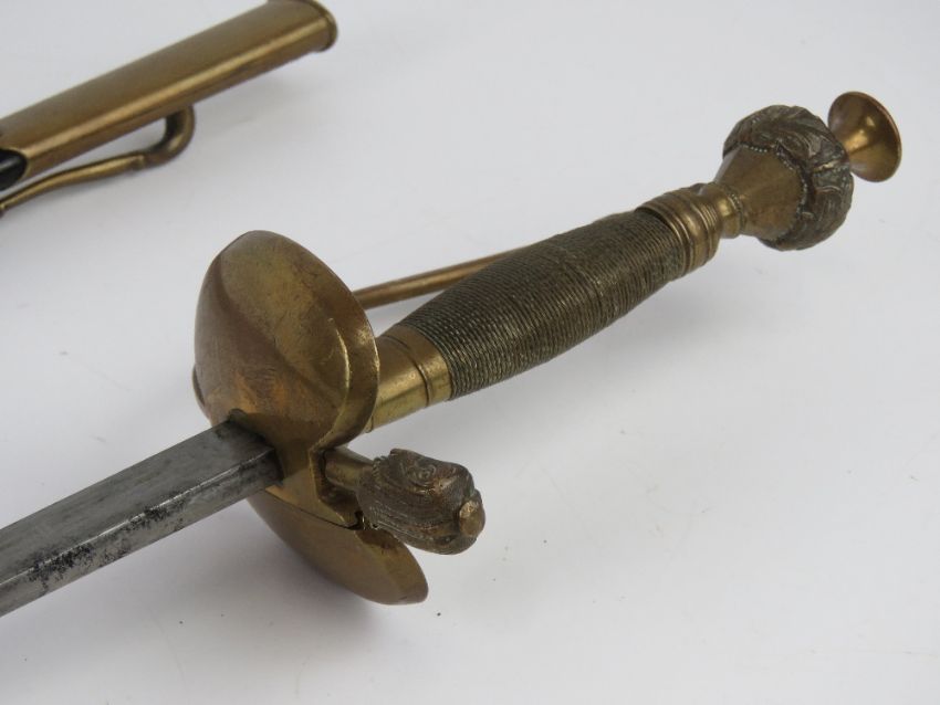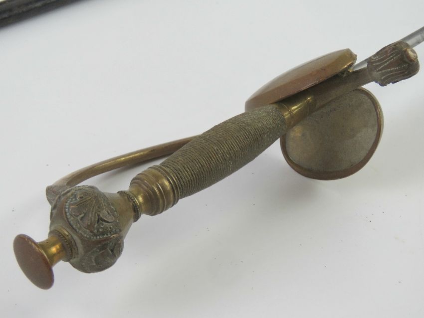 An 1897 pattern George V Infantry officer's sword with scabbard and belt straps.