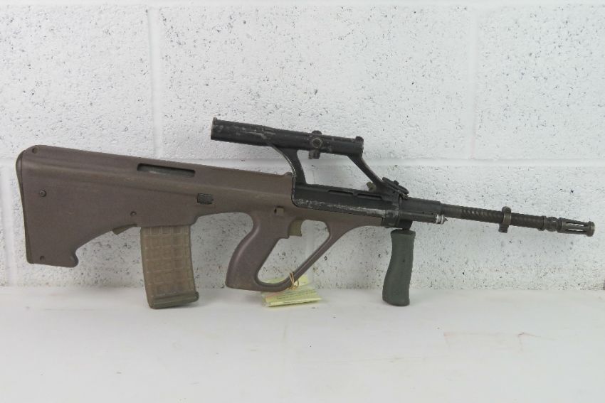 A deactivated Steyr AUG 5.56mm Assault Rifle, latest EU Spec, with optical sight, moving trigger, safety, cocking handle. With certificate.