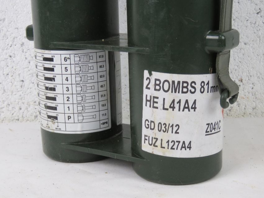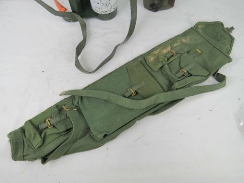 A Bren barrel bag, 81mm Carl Gustav twin transit tube, ten un-issued SA80 bayonet scabbards and an ammo pouch.