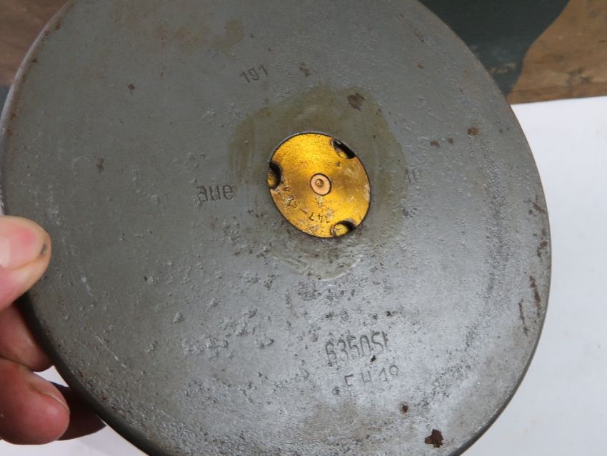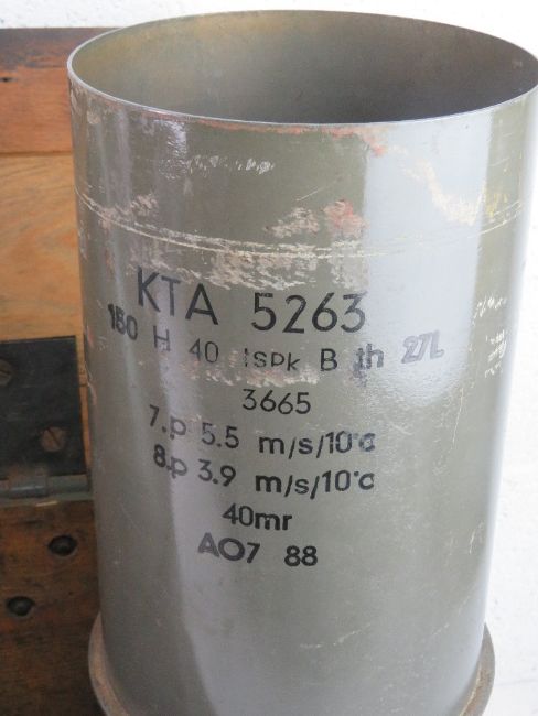 A WWII German shell transit case with inert shells, original stencilling on the box, 3 x 7 inch shells, dated 1940 and stamped.