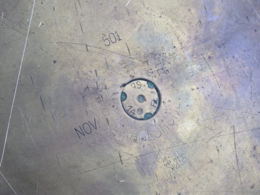 A WWI German Howitzer shell casing, dated 1917 and having mark upon. Approx. 11cm tall and 15.5cm across, a/f. Together with another dated 1916. Two items.