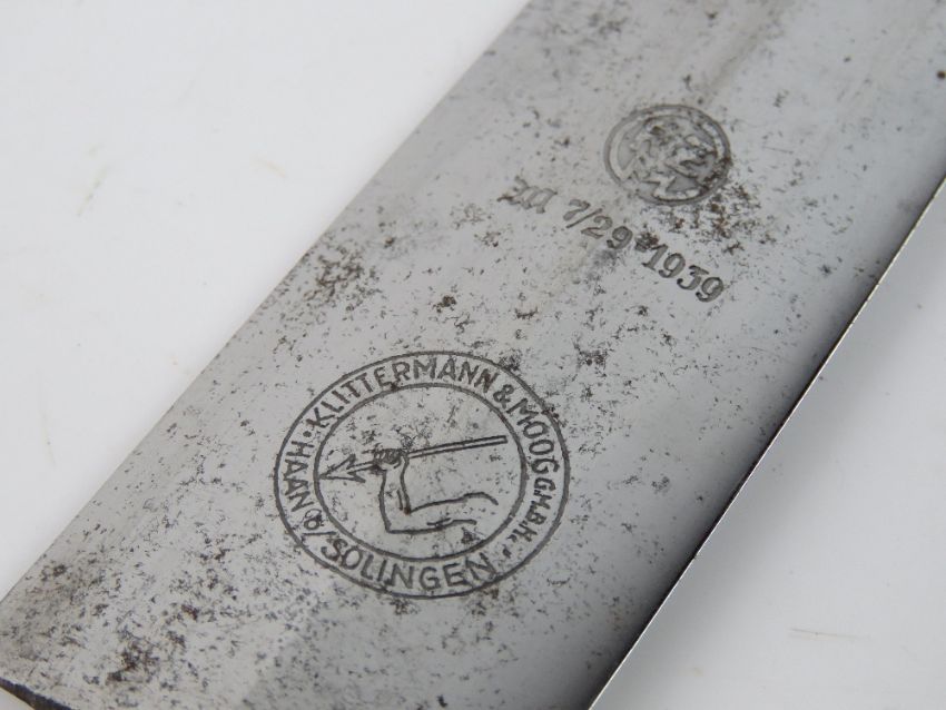 A WWII German SA/NSKK Dagger blade, with makers mark RZM M7/29-1939 marked 'Klittermann & Moog g.m.b.h. Haan Solingen'.