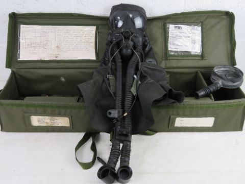 A Pilots/Aircrew gas mask CBRN respirator in transit container.