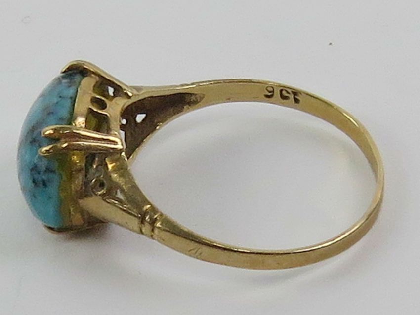 A 9ct gold an turquoise ring, stamped 9ct, size S, 2.68g.
