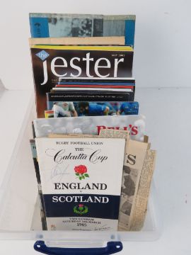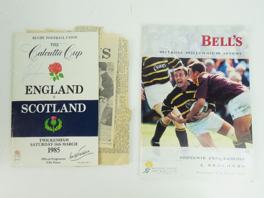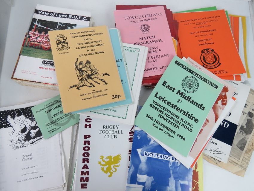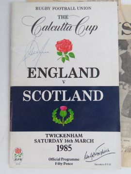 A collection of Rugby programmes including signed programmes, one bearing numerous signatures of the Fijian Rugby team.