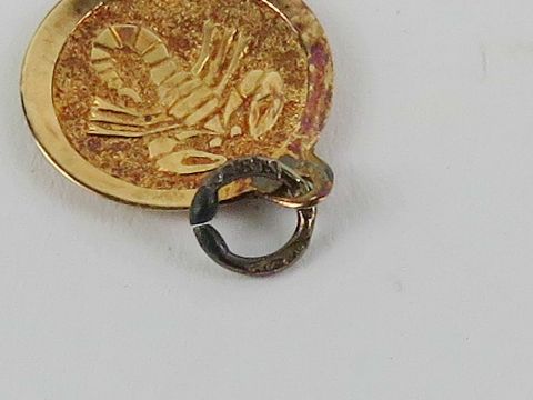 An 18ct gold Scorpio charm, 12mm dia, 0.58g.