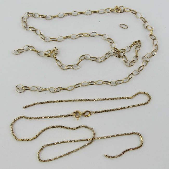 Two 9ct gold chains, a/f, stamped 375, total weight 6.15g.