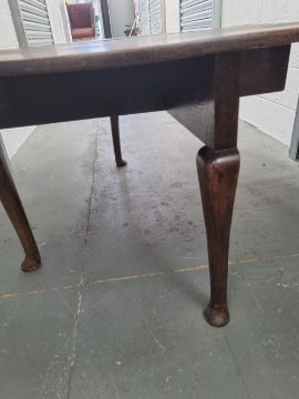 An oval drop leaf table raised over shaped legs, 5ft x 4ft x 2ft 4".