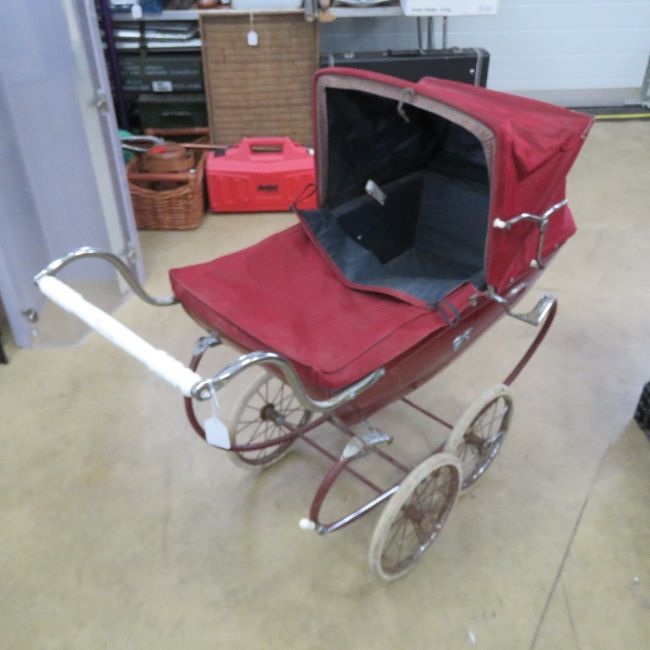 A Silver Cross dolls pram in red.