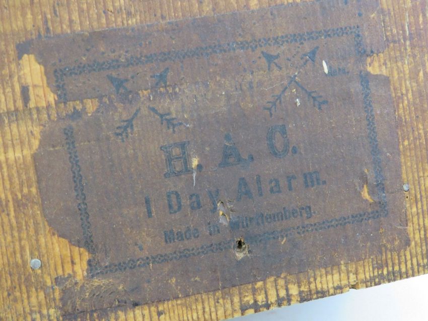 A vintage mantle clock having wooden case with glazed door, brass and paper dial.