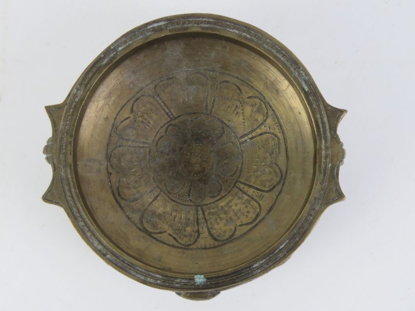 A heavy 20th century brass censor in the Chinese style, approx 14cm dia.