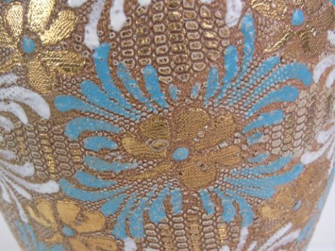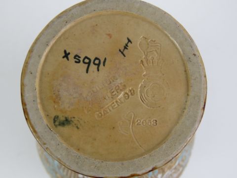 An Edwardian Doulton Lambeth, Slaters Patent, stoneware vase c.1903, having embossed floral design in turquoise, white and gold, standing 28cm high.