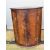 A late Georgian barrel fronted hanging corner cabinet in mahogany and walnut, two shelves within, original H shaped hinges, for restoration.
