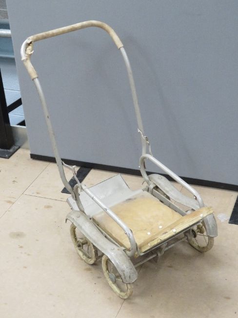 A vintage collapsible dolls pram.