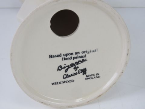 A Clarice Cliff design later produced by Wedgwood; Bizarre pattern vase in cream ground with orange geometric pattern.