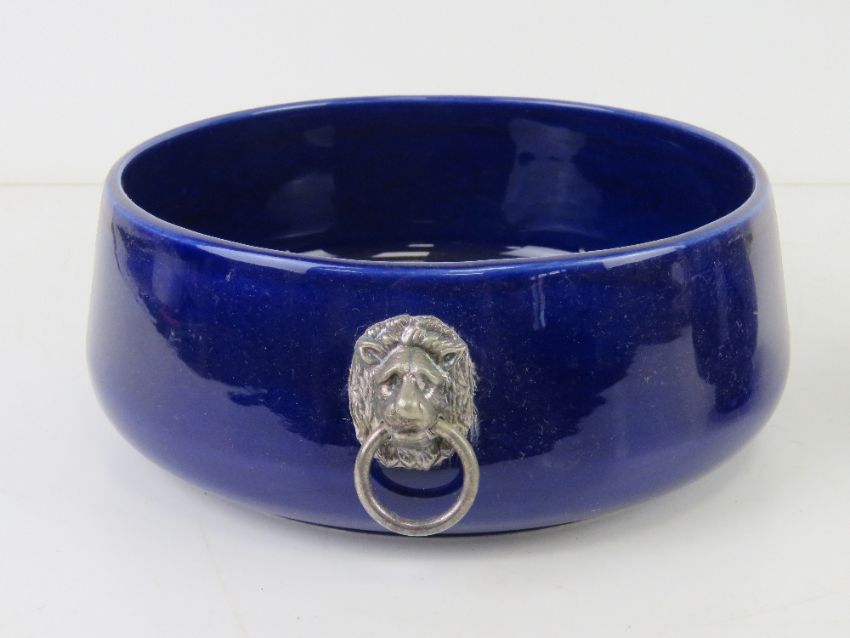 Two blue Wade Falstaff bowls, the larger having lion head handles and measuring 21cm diameter.