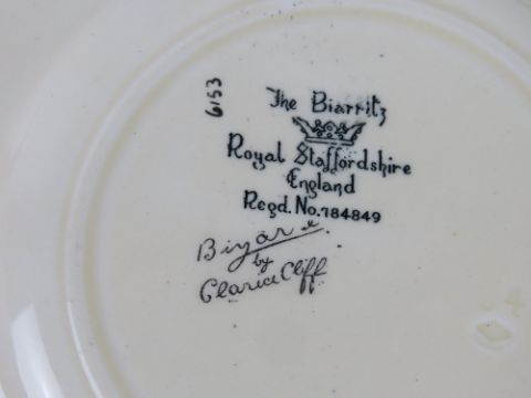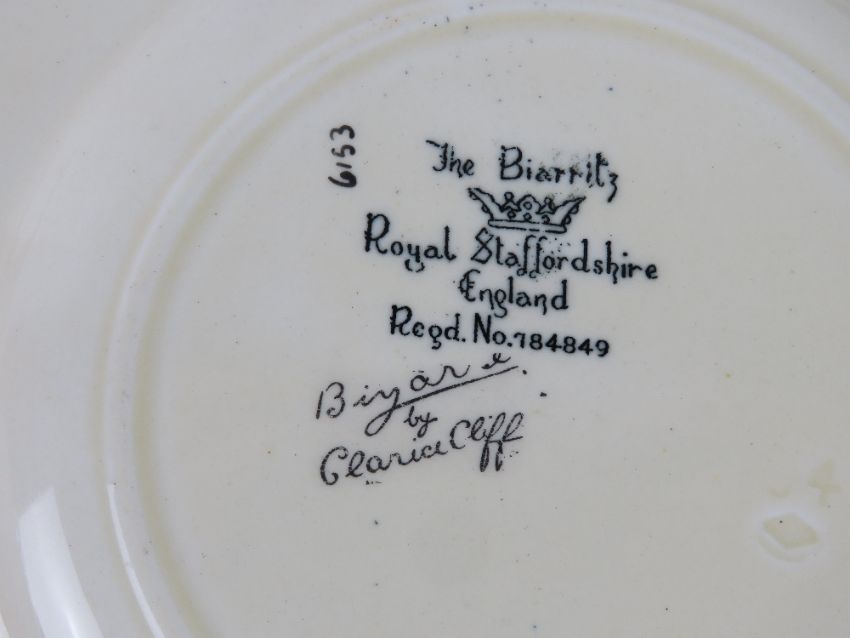 A pair of Clarice Cliff hand painted Sunshine pattern bowls, together with a quantity of Clarice Cliff designs later produced by Royal Staffordshire including Bizarre pattern and Crocus pattern.