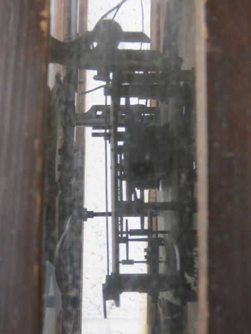 A Vienna 30 hour wall clock with weights and pendulum, enamel dial, for simple restoration. Approx 115cm in length x 47cm.