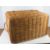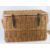A large coffee table sized lidded wicker hamper having end handles and leather straps approx 72 x 46 x 46cm high.
