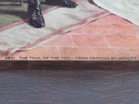 Print; 'The Trail of the Fox' from a painting by Mohlte, in oak frame, sight size 50 x 34cm, overall size 75 x 60.5cm.
