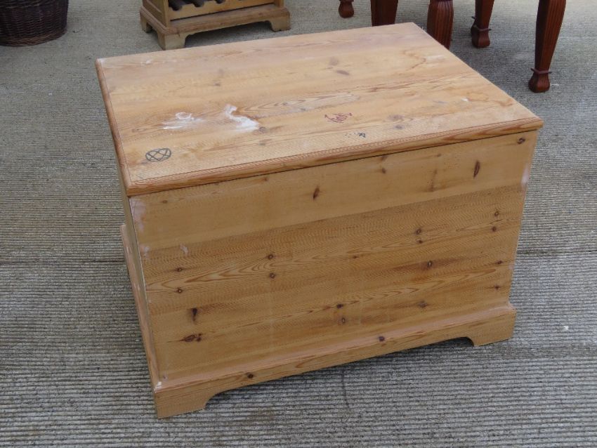 A large pine blanket box / toy chest, 81 x 61 x 56cm.