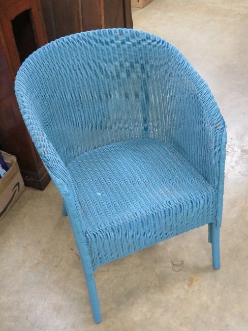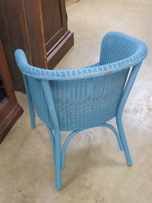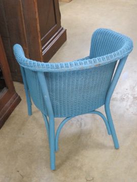An original Lloyd Loom Lusty wicker tub style chair in turquoise blue having original label upon.