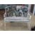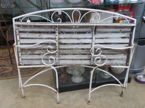 A metal framed white painted folding garden bench.