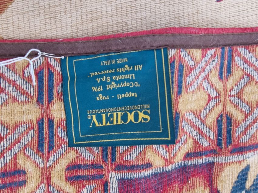 A Society Tappeti Italian cotton rug with floral design on cream ground, 247 x 173cm