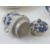 Blue and white ceramics including tea strainer, coffee cups, two contemporary lidded tureens