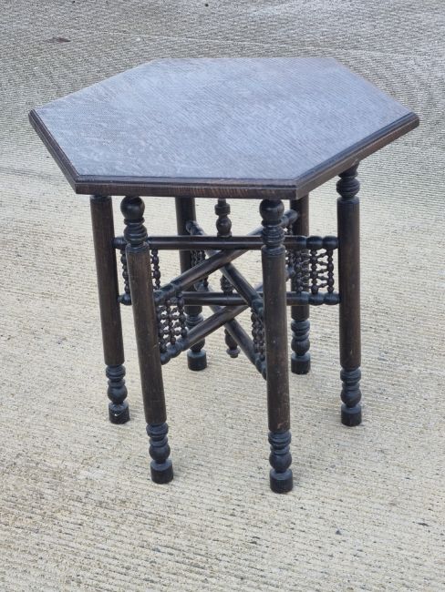 A 19th century Moroccan carved six-leg folding table, 52 x 52 x 58cm.