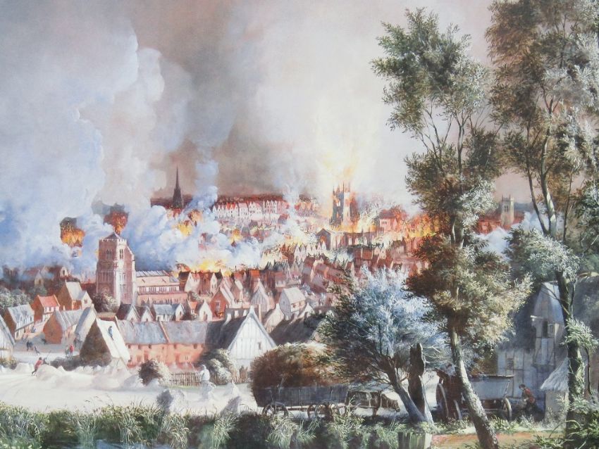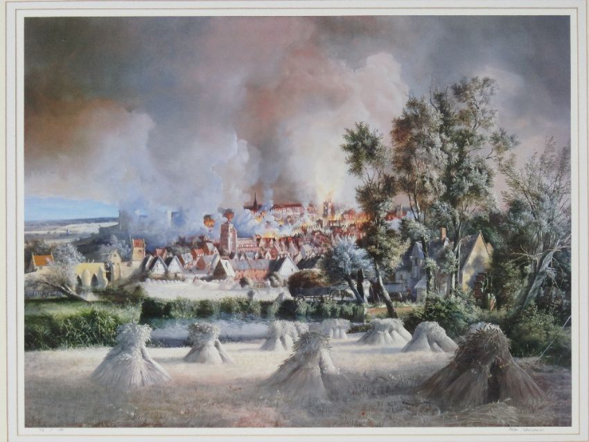 Peter Newcombe, signed limited edition print '800th Anniversary of Northamptons Charter', 72 of 100, signed in pencil lower right, sight size 55.5 x 41.5cm, framed and mounted.