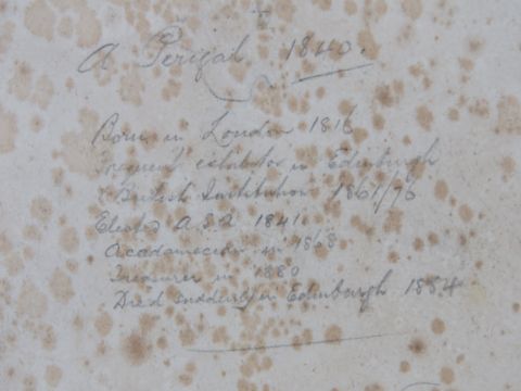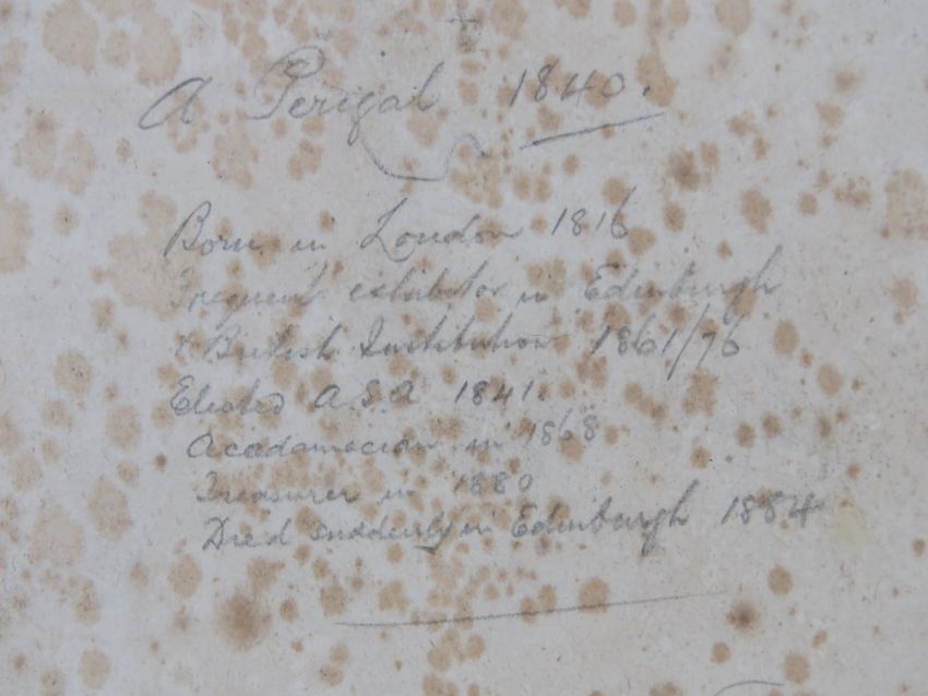 Arthur Perigal (1816-1884)RSA Pencil , watercolour and gouache ' The Head of Derwentwater 1840 ' Signed lower right besides an Artillery field cannon, titled and labelled lower, bears date and biography verso, Aperture 8 3/4 x 13 1/8” ( 22.3 x 33.2 cms)