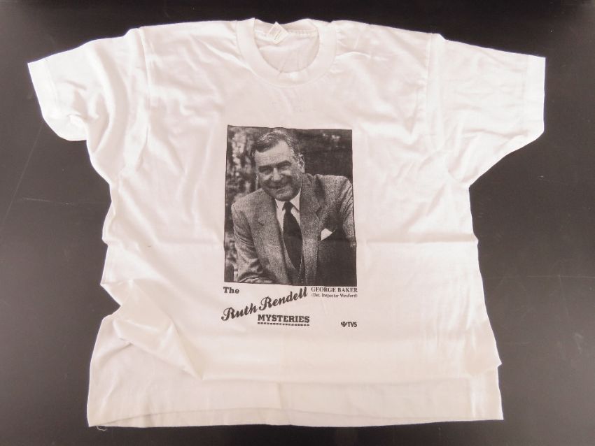 George Baker autograph; a hand signed 'The Ruth Rendell Mysteries' T-Shirt 'Best Wishes George Baker' in black pen.