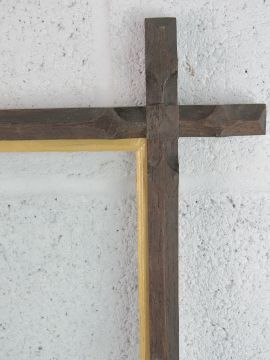 Neo-Gothic Oxford Frame - a 19 th C chamfered and shaped Frame with silver- gilt coloured slip, glazed 3/4 inch ( 1.905 cm) wide , to fit 24 3/8 x 20 1/8 inches ( 61.91 x 51.12 cm)