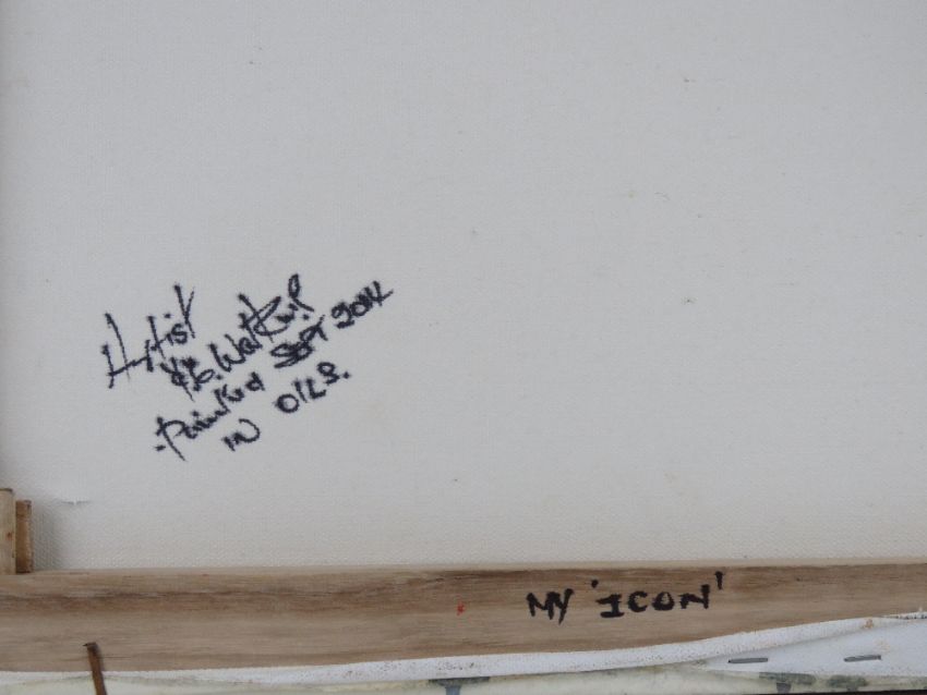 Frank Watkins; oil on canvas 'My Icon' framed 55.5 x 75.5cm.