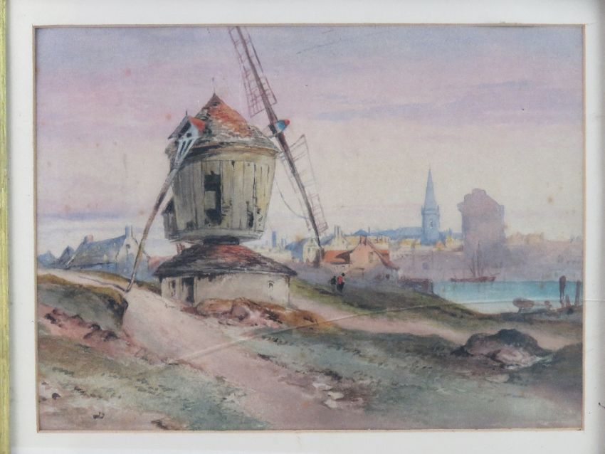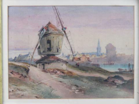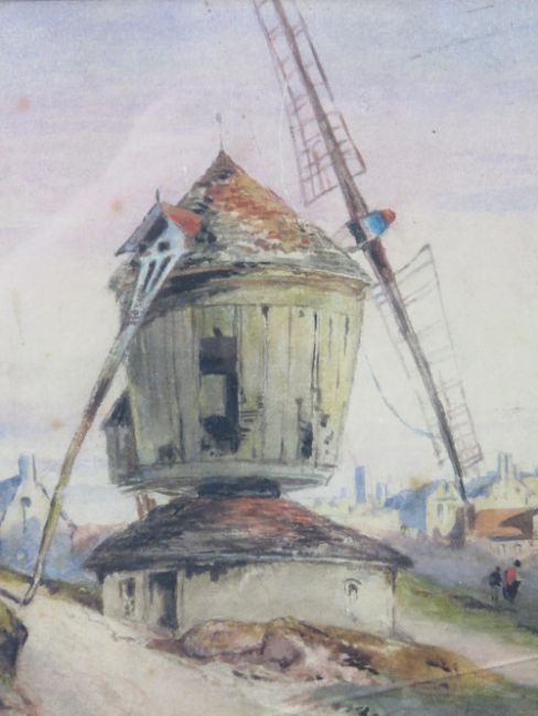 William Tatton Winter ( 1855-1928) Watercolour, 'The Windmill'. Titled and penned verso, 10 x 13 3/4 ( 25.4 x 34.92 cm) aperture