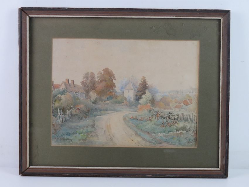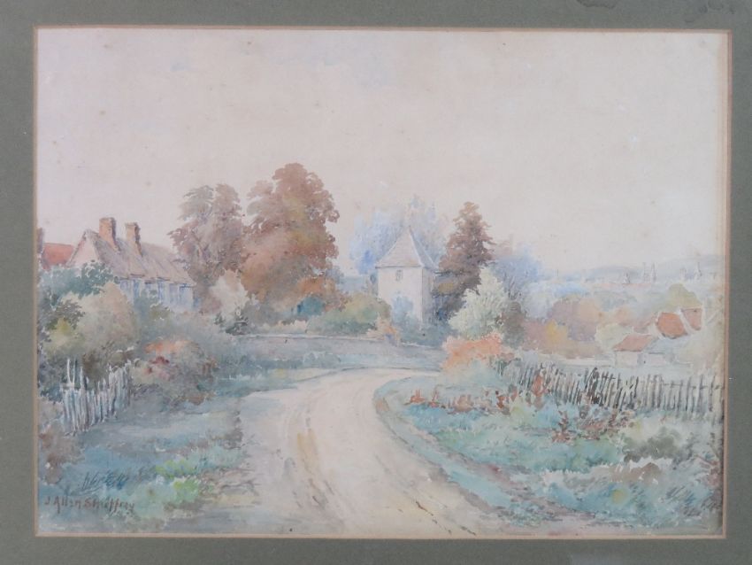 James Allen Shuffrey (1859-1939) Watercolour A Cotswold village ( Possibly Stow-on the- Wold) Signed lower left 9 3/4 x 13 1/4 inches (24.8 x35cm)