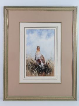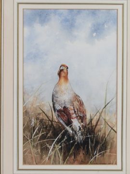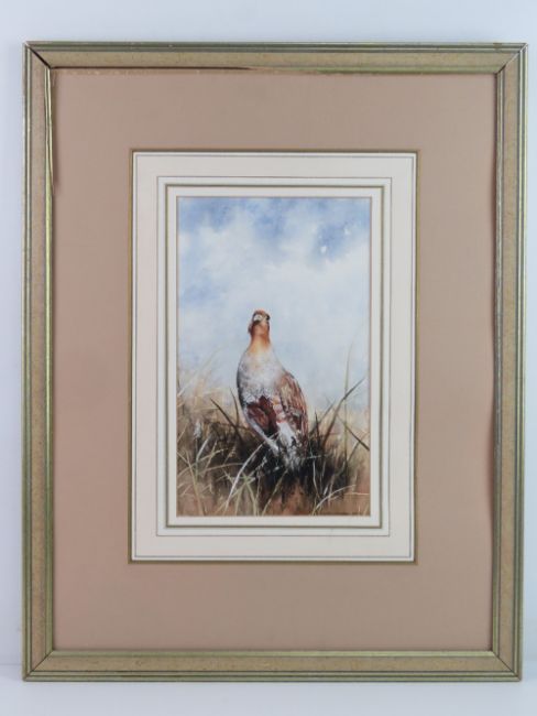 Ann Willoughby King ( mid XX) Watercolour with gouache highlights Portrait of a English Partridge Signed lower right Aperture 12 5/8 x 7 5/8” ( 32 x 19.3 cms)