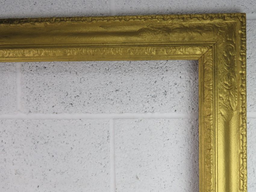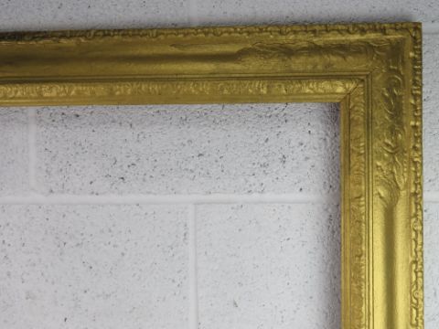 Early to mid 20 th C gilt portrait frame - having stylized Egg and Dart inner, relief corners and outer stylized outer border, having braced corners, 4 1/4 in / 10.79 cms, to fit 36 x 34 1/2 in. / 91.44 x 87.63 cm