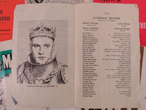 A quantity of assorted Theatre, Ballet and Opera programmes inc two copies of Henry V at Marble Arch Pavilion starring Laurence Olivier as King Henry V of England, The Aspern Papers starring Michael Redgrave, The Pirates of Penzance starring Tim Curry, Pickwick starring Harry Secombe, The Dutch Courtesan, directed by Laurence Olivier, Trelawny of the Wells, directed by Laurence Olivier. Approx twenty three items.