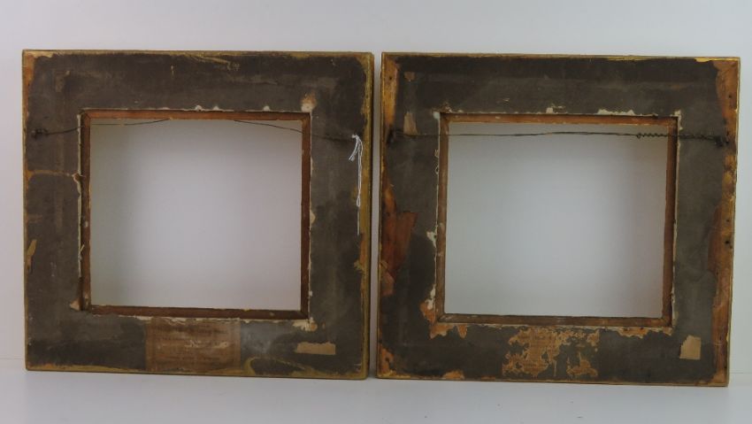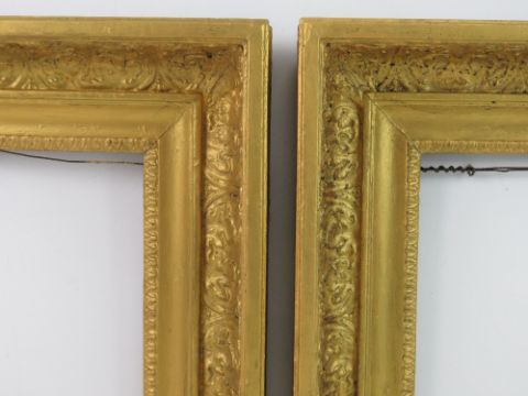 A pair of 19 thC French Gilt Frames - a pair of swept frames with acanthus and egg & dart decoration, 3 inches wide, to fit 9 1/2 x 10 1/2 inches ( 24.13 x 26.67 cms)