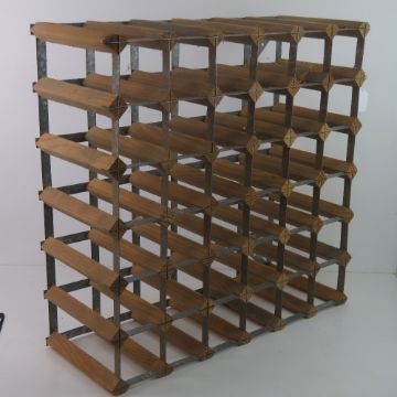 A wooden and metal wine rack.