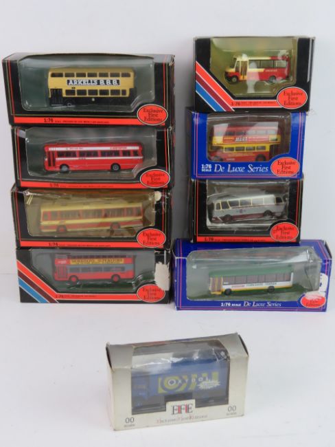 A quantity of Exclusive First Editions scale model buses and commercial vehicles. Nine items.
