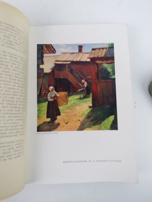 An unnamed pair of vintage Opera glasses, together with an Anchor Preston set of draughtsman compasses, a 1898 copy of Debretts Peerage, and a 1909 studio edition of 'Sketching Grounds' and a 1910 edition of Heson Art of Sweden Lapland and Iceland. Five items.