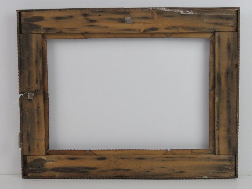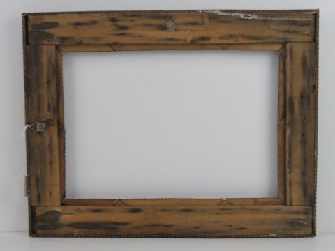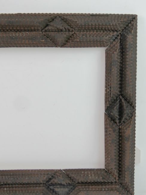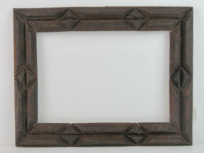 Folk Art / Tramp Art frame - an unusual circa 1900 hand carved multi sectional stained pine picture frame, 2 3/8 inches ( 6.032 cm) wide , to fit 14 1/4 x 10 1/8 th ( 36.195 x 25.72 cm).