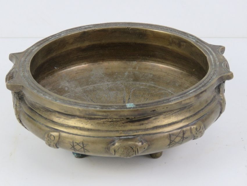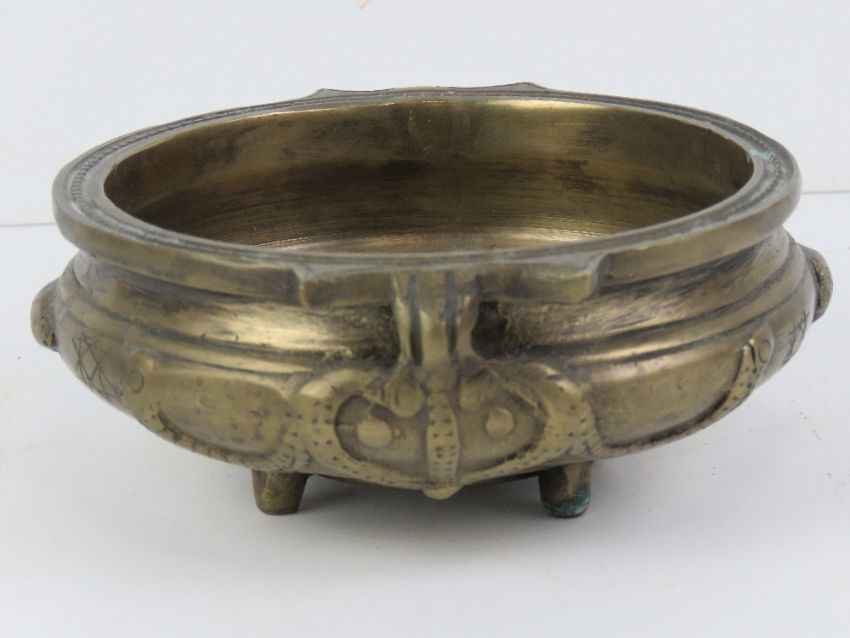 A heavy 20th century brass censor in the Chinese style, approx 14cm dia.