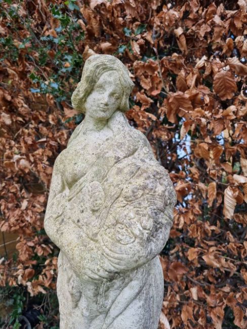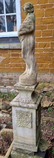 A marriage of pre-cast stoneware statue on pedestal, 180cm high.